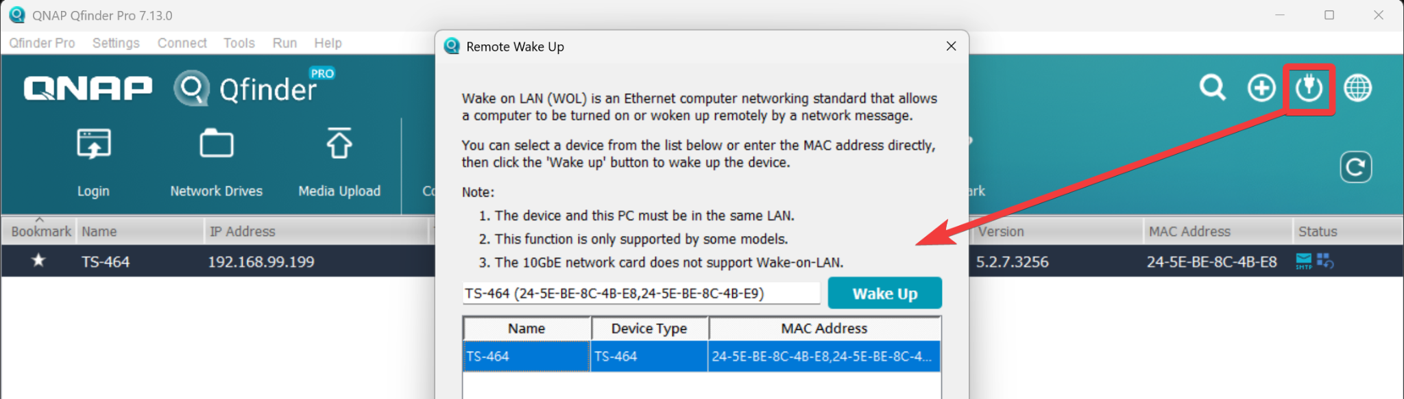 Setting aside environmental limitations, there are numerous third-party tools and apps that can wake devices via WOL. Qfinder Pro itself comes with built-in WOL functionality for QNAP NAS, allowing you to perform this task on a computer or a mobile device without issuing command-line instructions.