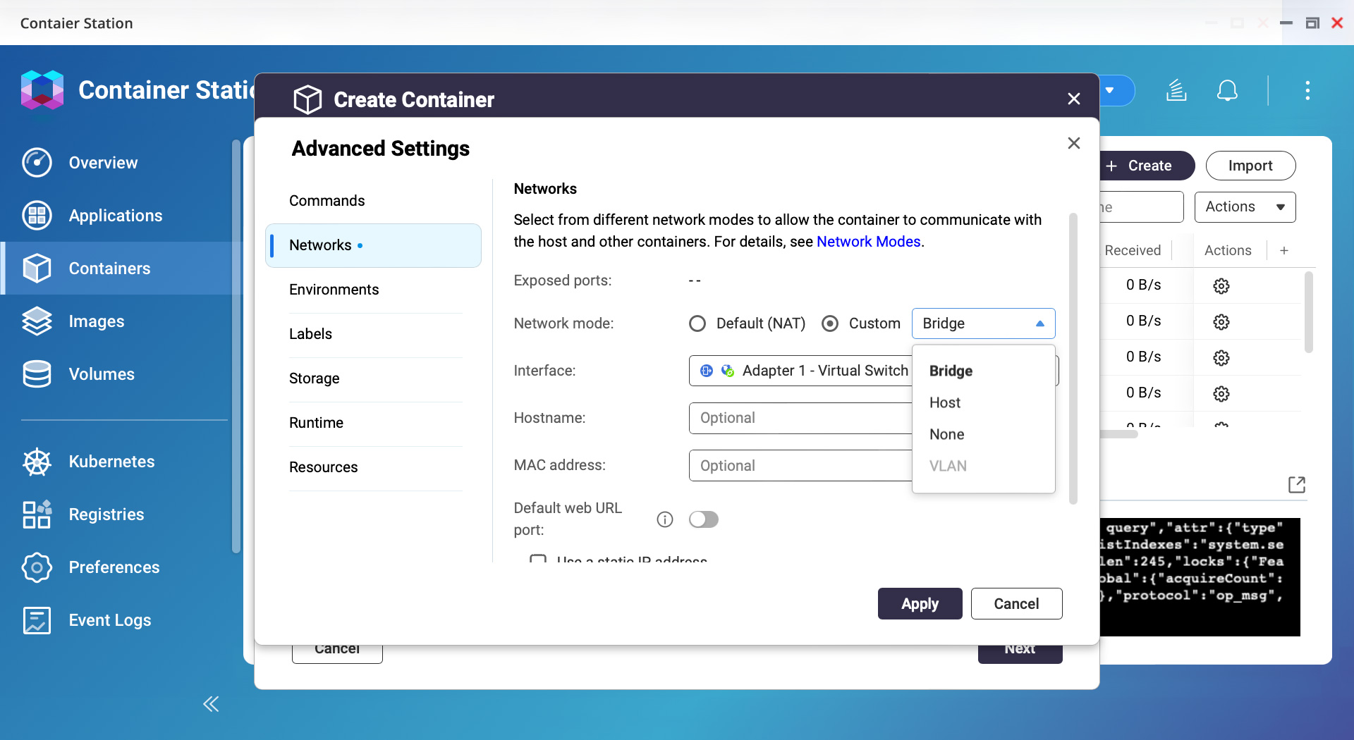 Container Station 3.0: 유연한 배포를 위해 여러 네트워크 모드와 VLAN을 지원합니다.