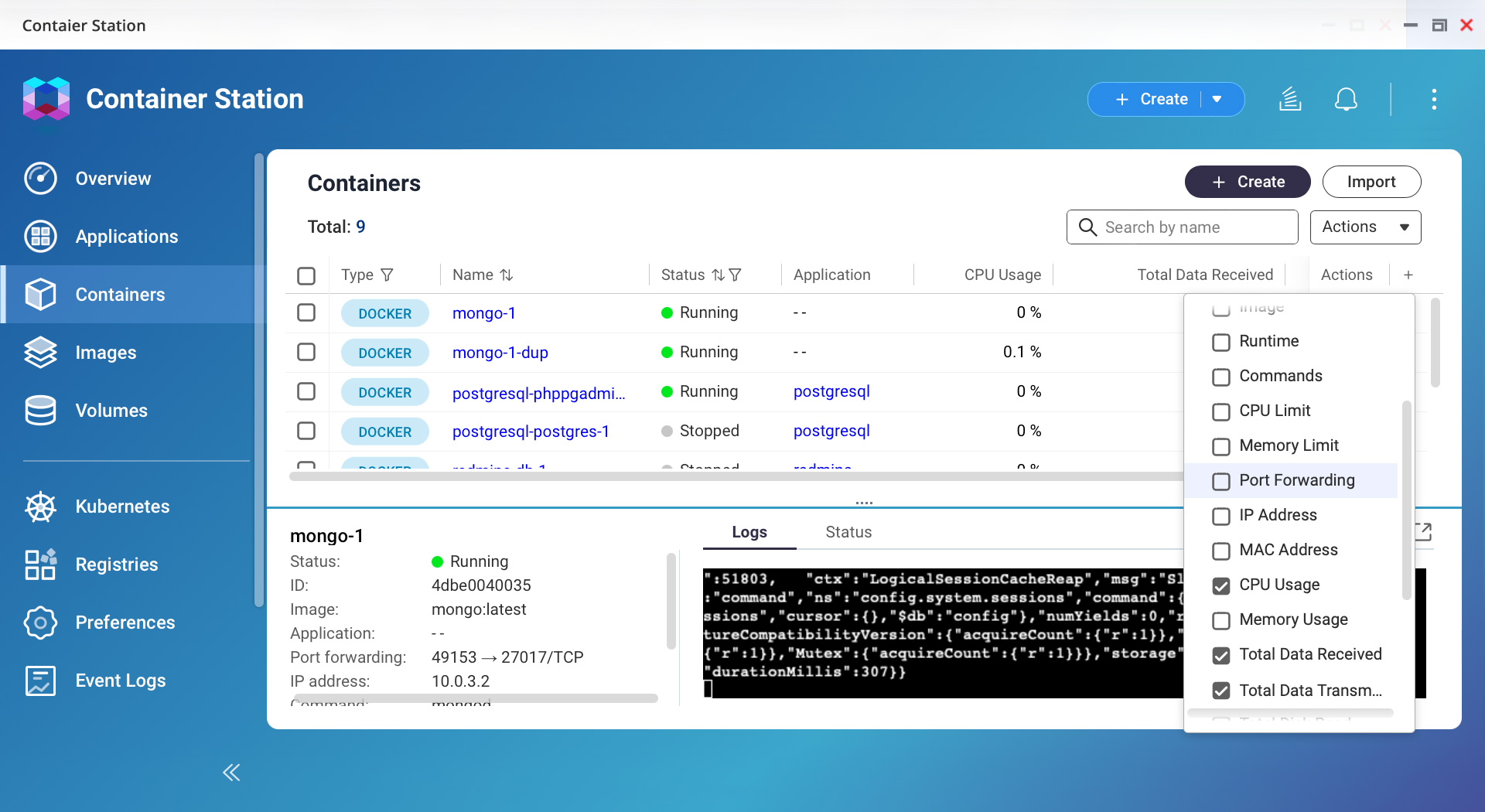 Container Station 3.0: 유연한 표시를 위해 컨테이너 정보 목록에서 최대 23개의 정보 항목을 사용합니다.