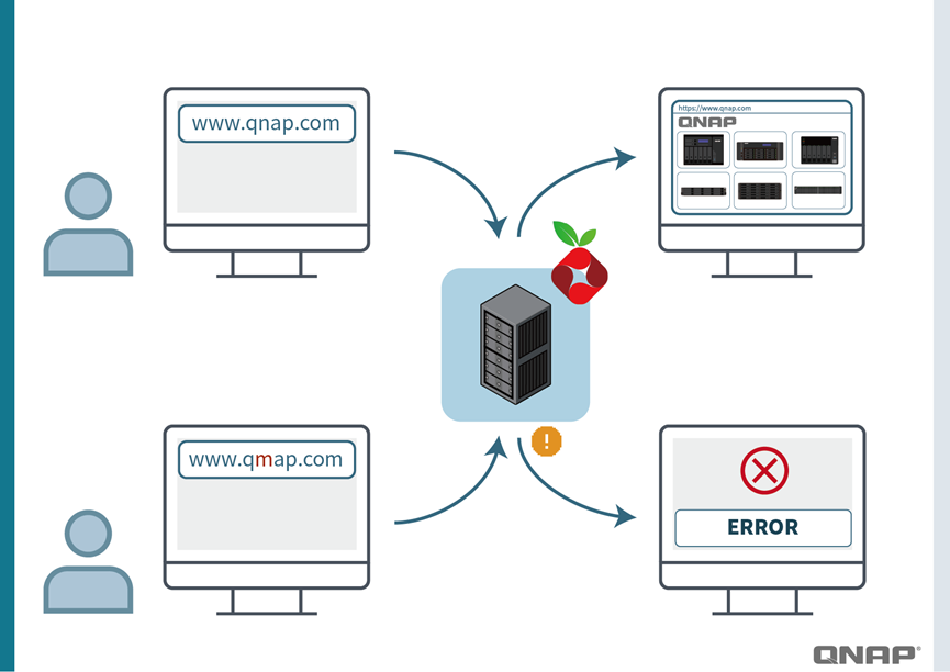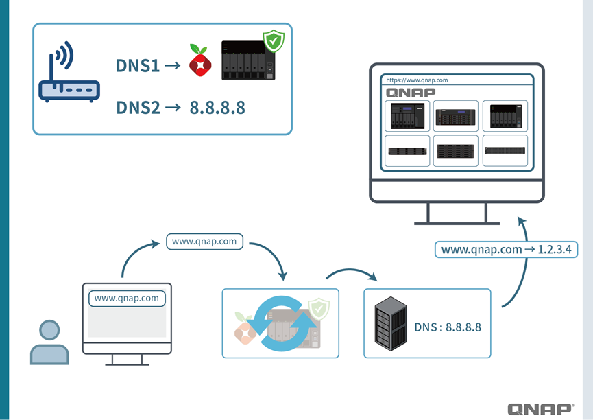 當你輸入 qnap.com,Pi-hole 會正常回覆正確 IP,讓你順利進入官網。