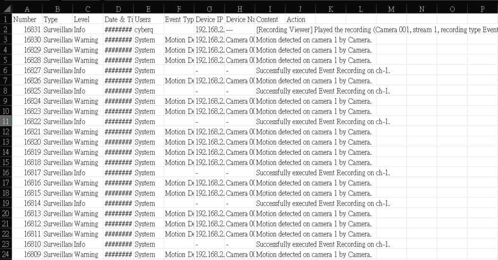 QVR 也可以輸出偵測紀錄檔為 csv 格式方便交換與其他應用。
