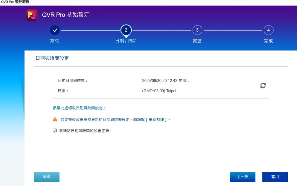 基礎設定: 確認日期/時間與時區,如上圖顯示的正確,這對於精確記錄事件時間戳至關重要。接著,等待系統完成安裝,如下圖所示。