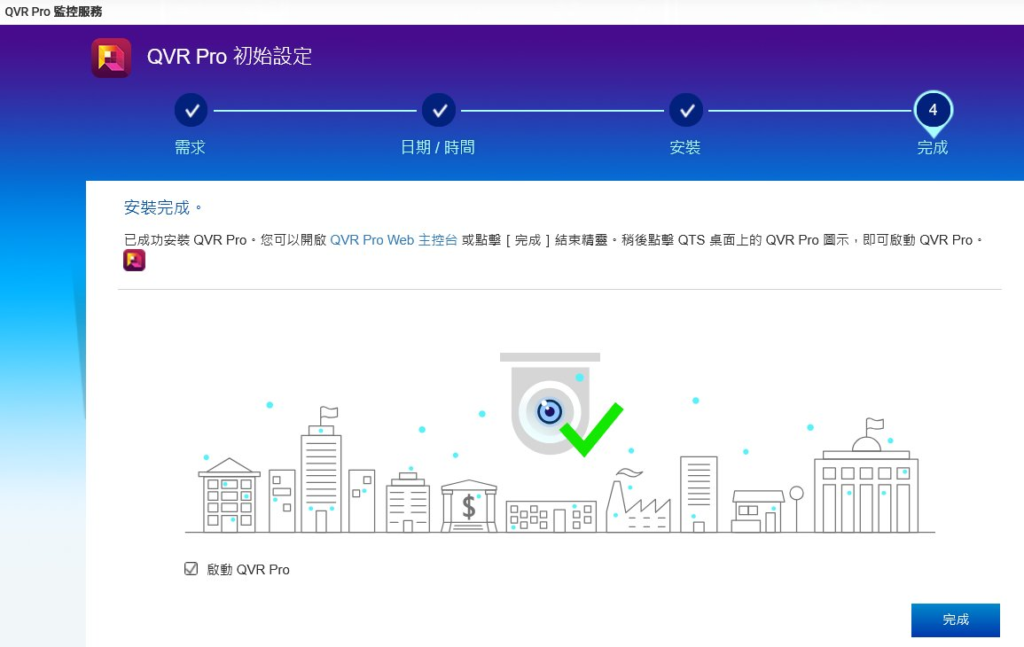 完成與啟動: 數分鐘後,QVR Pro 即可成功啟動並進入主控台,如下面兩張圖所示: