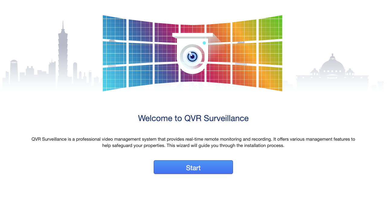 安裝啟動: 從 App Center,如上圖所示,輕鬆找到並啟動 QVR Surveillance,點擊「開始」即可進入初始化設定。