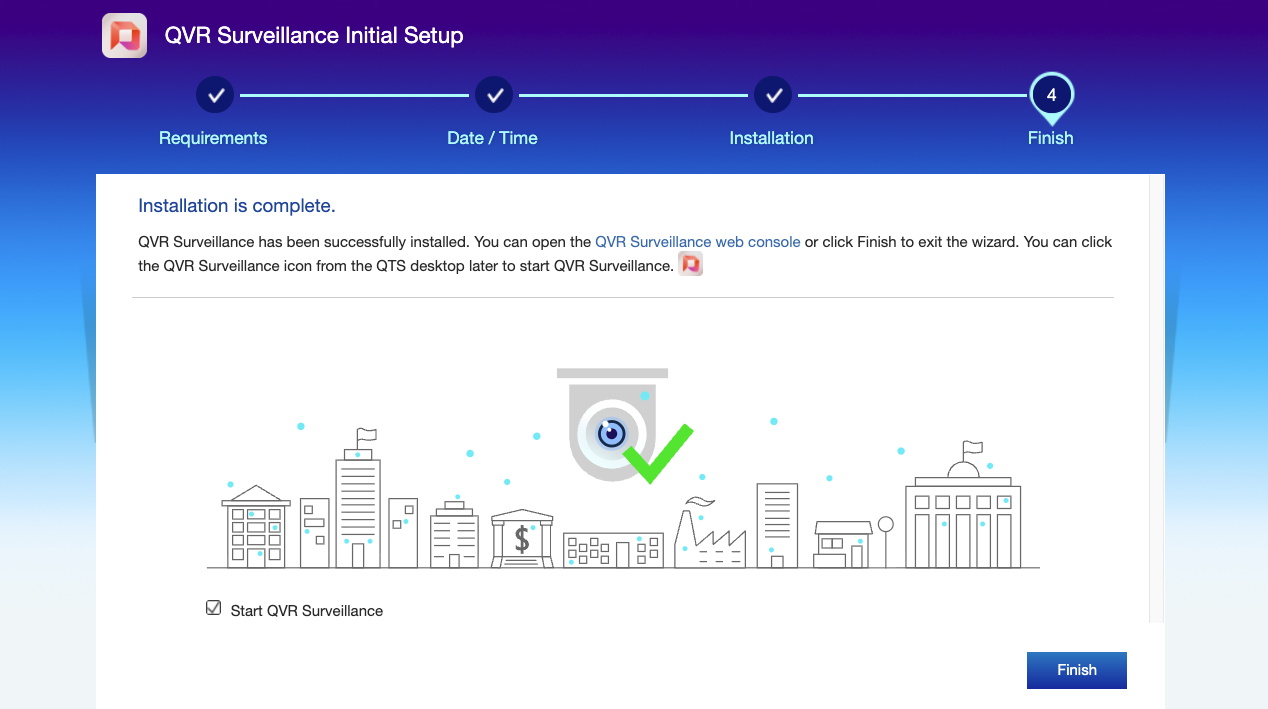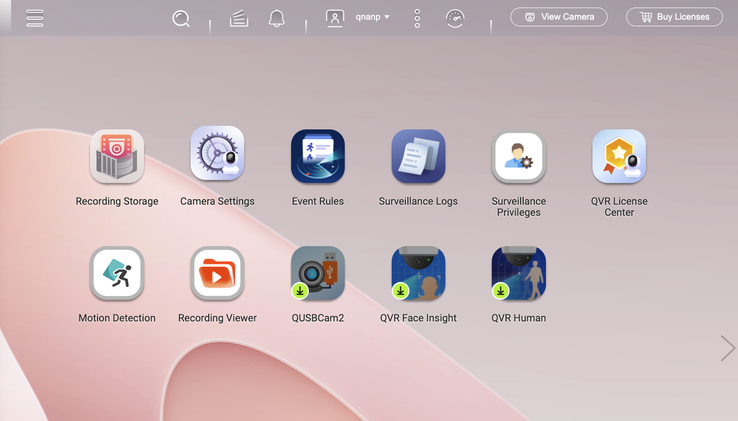 完成與啟動: 數分鐘後,QVR Surveillance 即可成功啟動並進入主控台:
