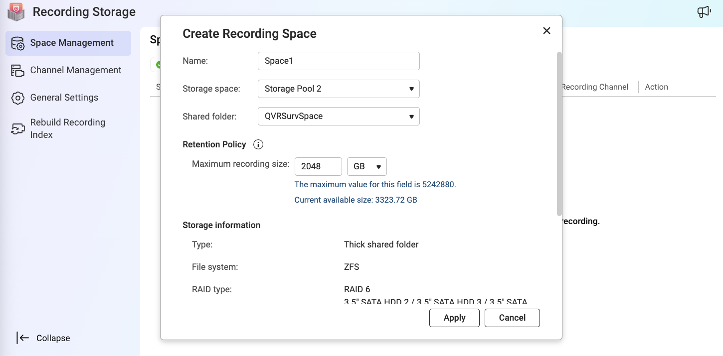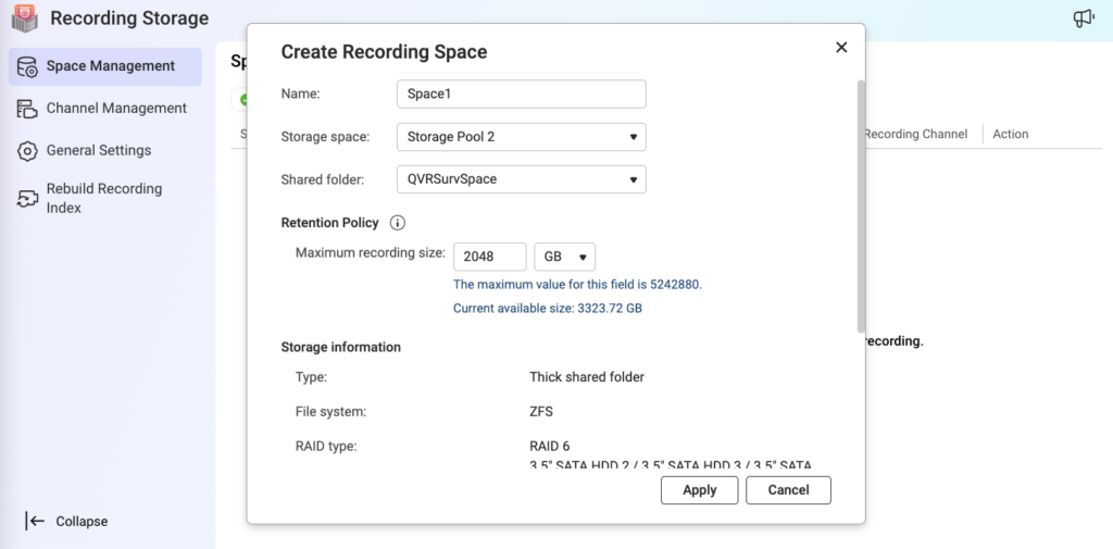 精確分配與管理: 我們可以選擇既有的資料夾作為錄影檔案的存放空間並明確定義錄影檔案的最大容量。這不僅是儲存管理,更是資料主權的體現,所有影像都不會未經允許離開我們的本地設備 NAS 。
