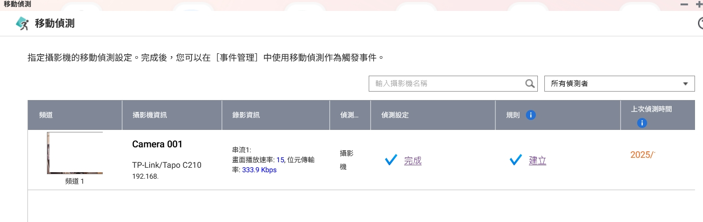 本地移動偵測: 系統內建「移動偵測」功能,如上圖所示,可以指定攝影機並進行設定。一旦偵測完成,這些移動事件就可以作為觸發條件,搭配事件規則來啟動特定的錄影或警報動作。重點是,這些運算和偵測都是在本地 QNAP NAS 上完成,不需將影像傳輸到公有雲進行分析,再次強化了我們在這個領域的資安作為。