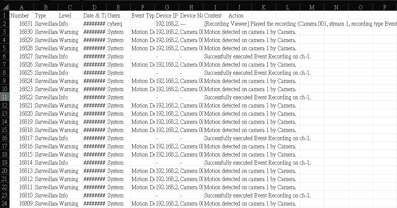 QVR 也可以輸出偵測紀錄檔為 csv 格式方便交換與其他應用。