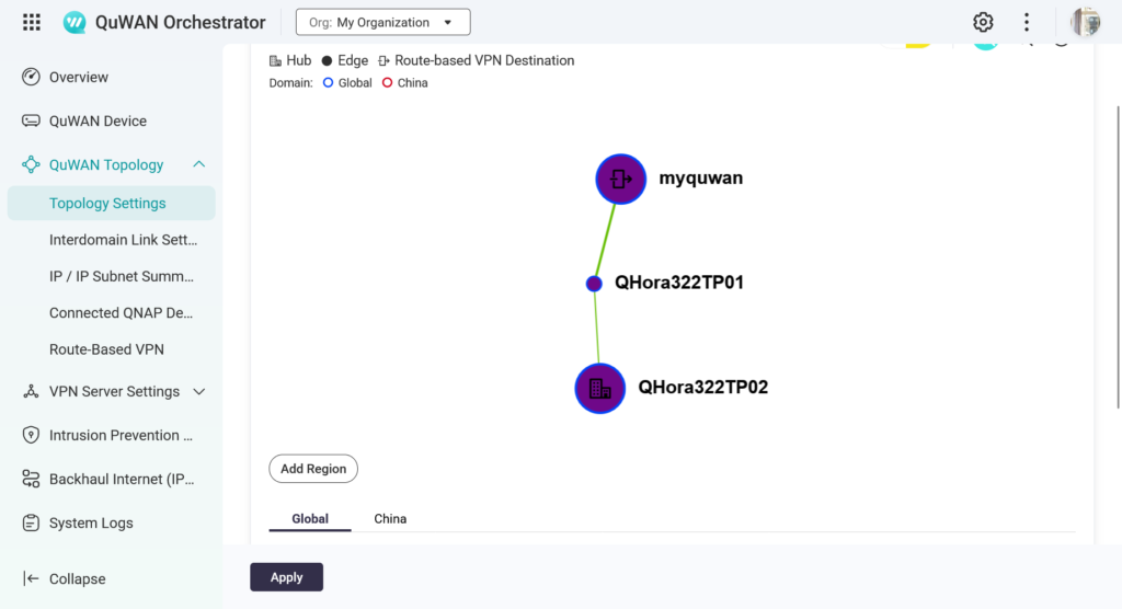 簡單來說,你有幾個分點就買幾台 QHora,搭配每個分點自己租用的電信業者網路,設定好主要的 Hub 節點與其他 Edge 節點全部部署完後,就能夠自動建立好所有分點到總公司的安全性連線,並且能夠都在同一個內網內工作,台中的分公司可以連回台北總公司的 QNAP NAS 檔案伺服器,或者是其他辦公室內網服務伺服器、印表機等等。台灣分公司也可以將資料安全地傳回日本總公司或歐洲據點,達成全球企業內安全性連網的需求。