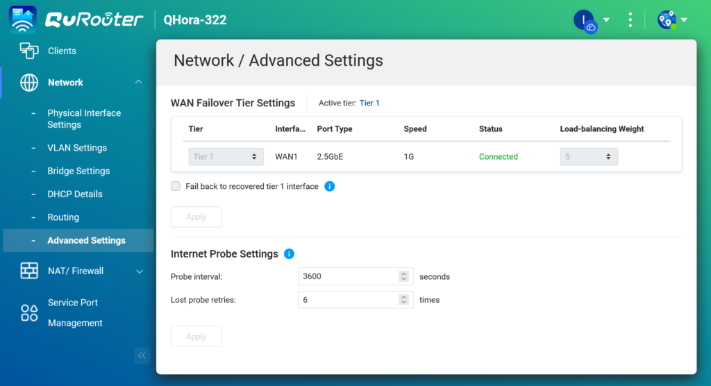 圖說十二:QHora 路由器提供 WAN Failover (故障轉移) 的進階設定,可連接多條外部線路。當主要線路中斷時,路由器會自動切換至備援線路,確保企業網路永不中斷,是維持商業營運連續性的關鍵功能。