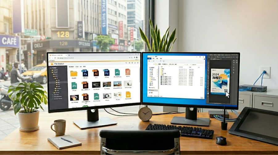 阿強是一名設計師,他習慣在電腦的「檔案總管」中直接操作檔案。透過 WebDAV 協定,他可以將 NAS 資料夾直接掛載為電腦中的網路磁碟機。