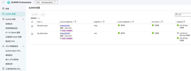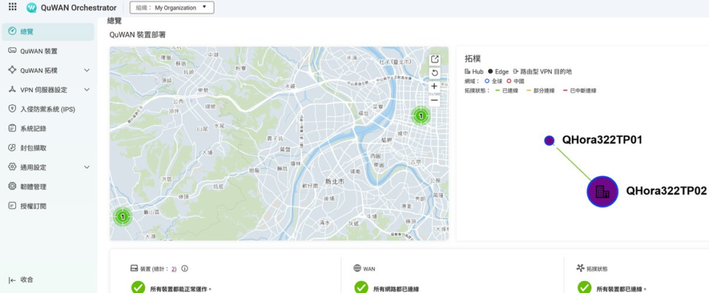 SASE 強調雲端管理。QuWAN Orchestrator 提供了一個單一的雲端介面(Single Pane of Glass),讓 IT 人員可以在總部監控全球數百個據點的流量、VPN 狀態與設備健康度,亦符合 SASE 的管理精神。